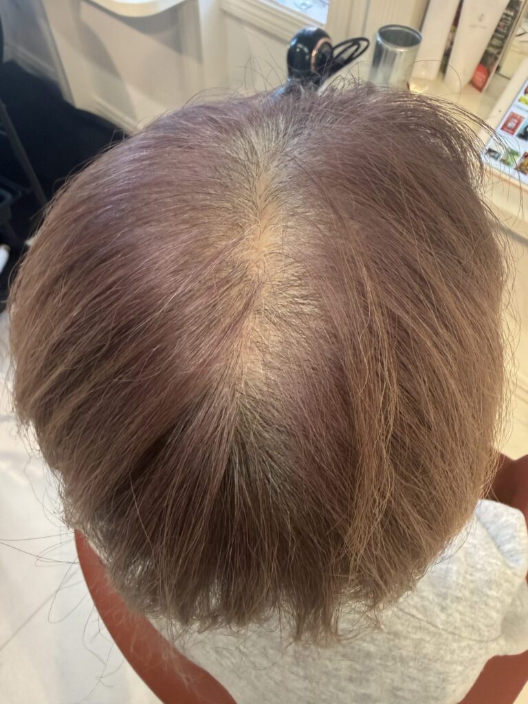 白髪ぼかしカラーは、白髪をしっかり完全に染めるのではなくて、明るさや色味を調節して自然に馴染ませていくカラーとなります。